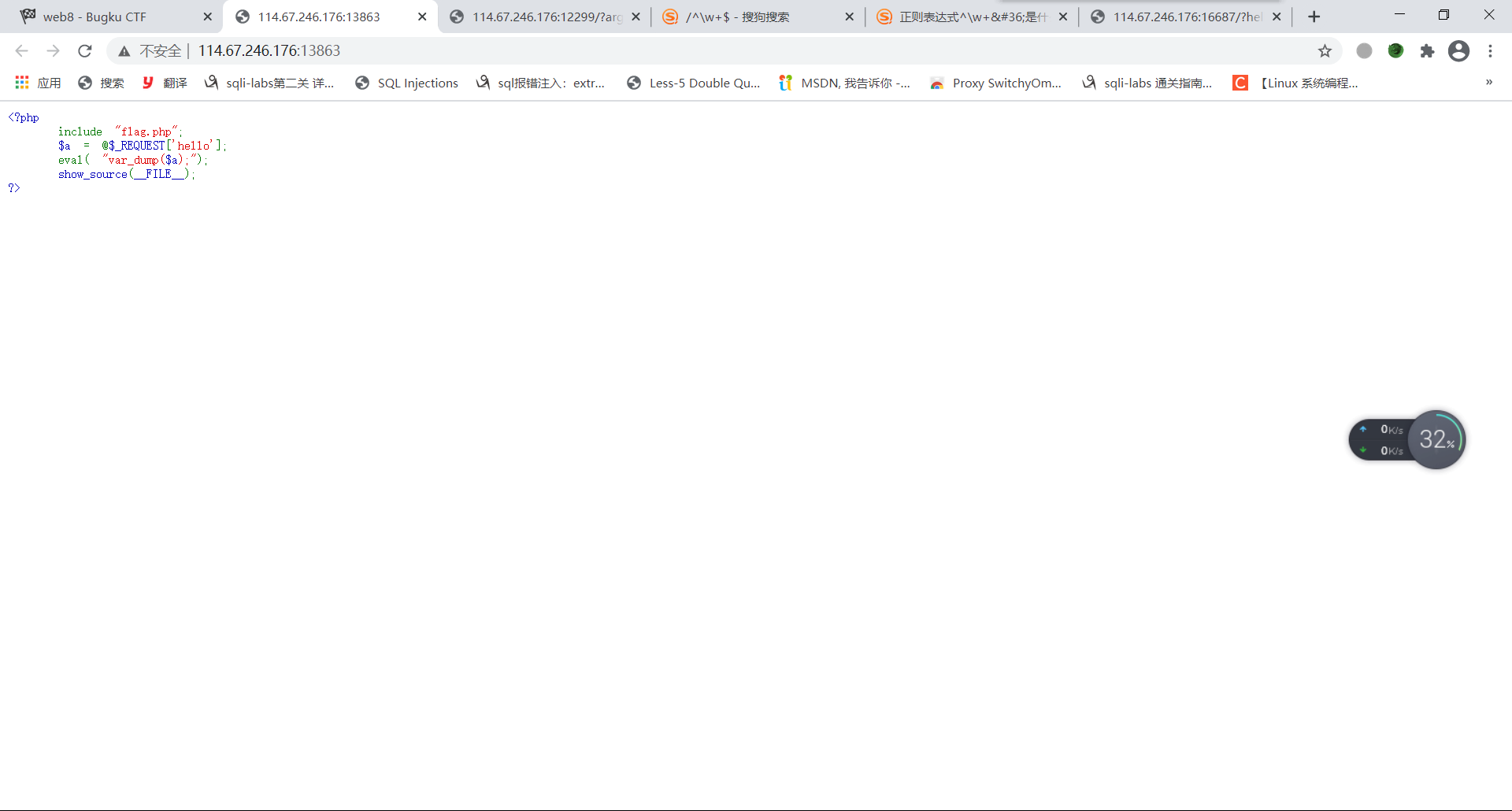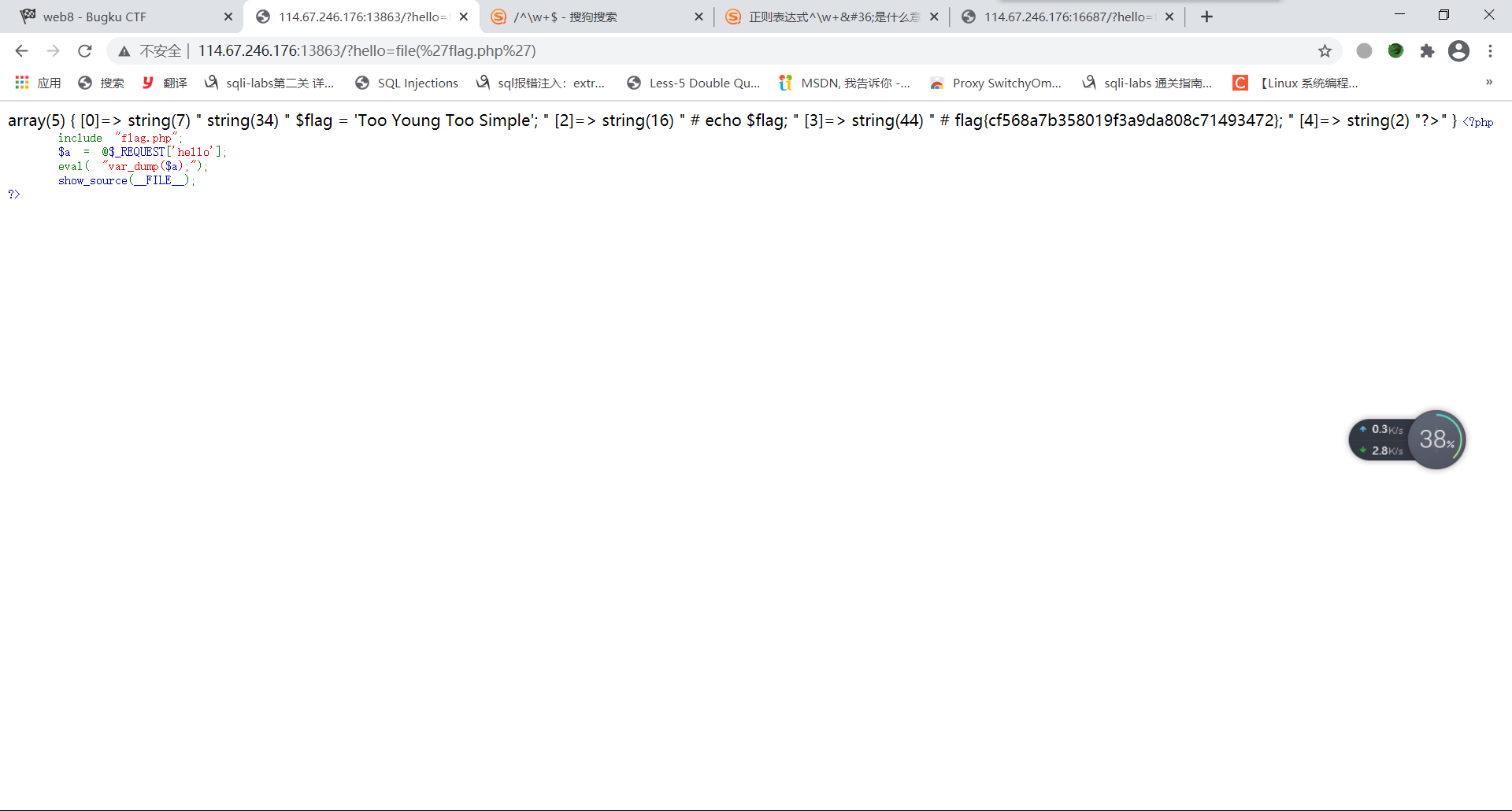 这两题长得挺像的,不过第八题只需要令其?hello=file(flag.php)即可,然而在第九题时,采取同样的方法,直接error。