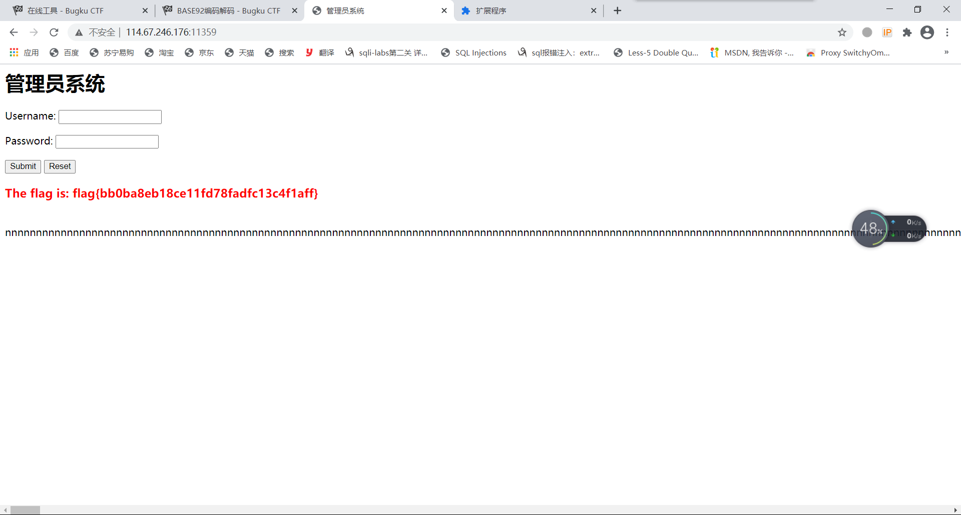 盲猜一下这个用户名是admin,再观察一下界面,这一大串的n肯定有问题