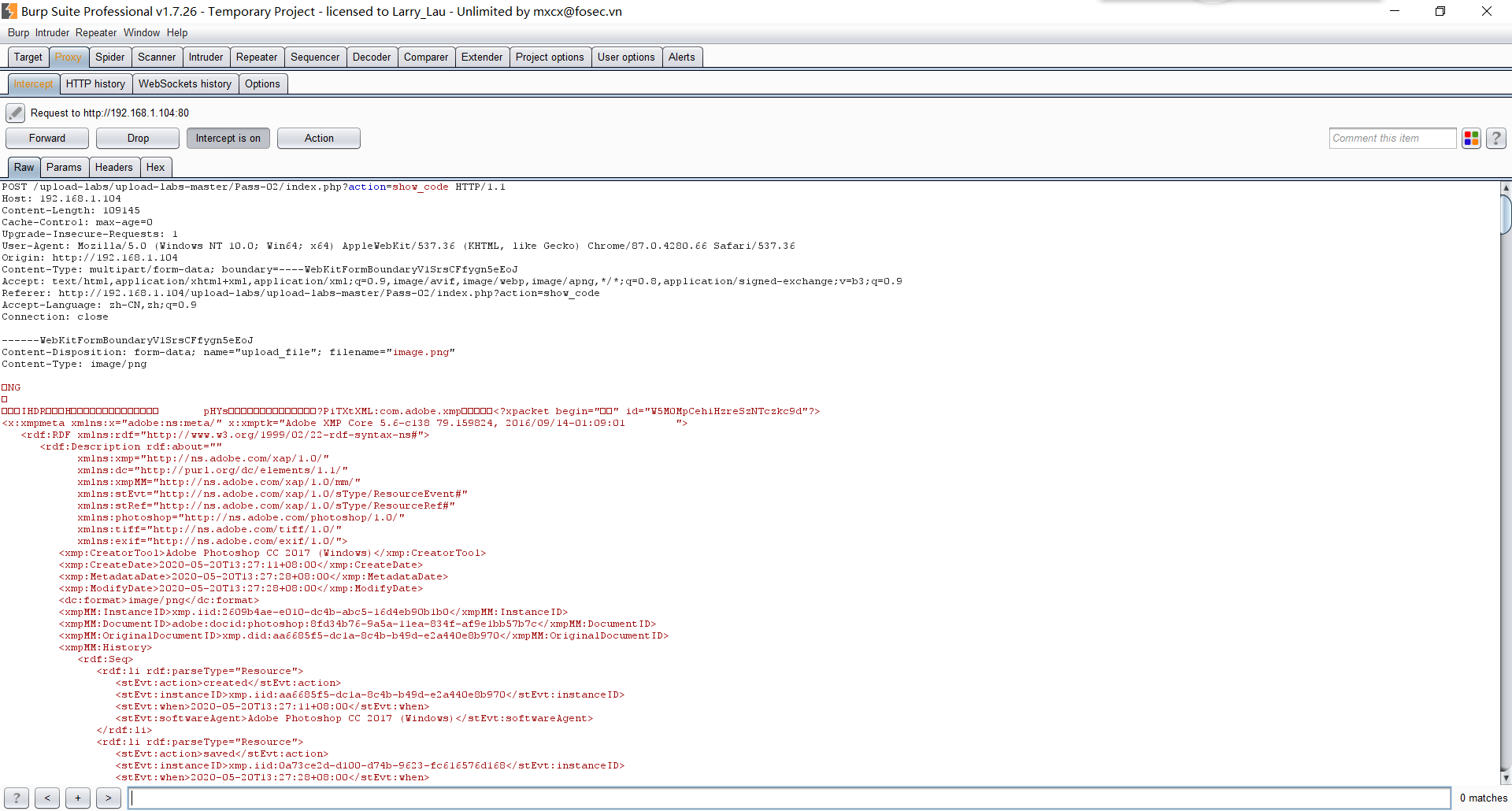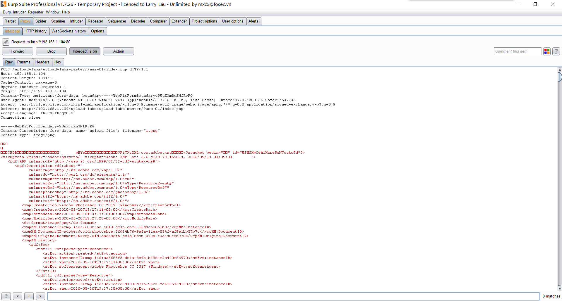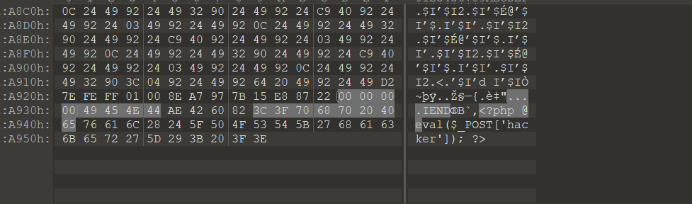 关于绕过gif的二次渲染,我们只需要找到渲染前后没有变化的位置,然后将php代码写进去,就可以成功上传带有php代码的图片了.