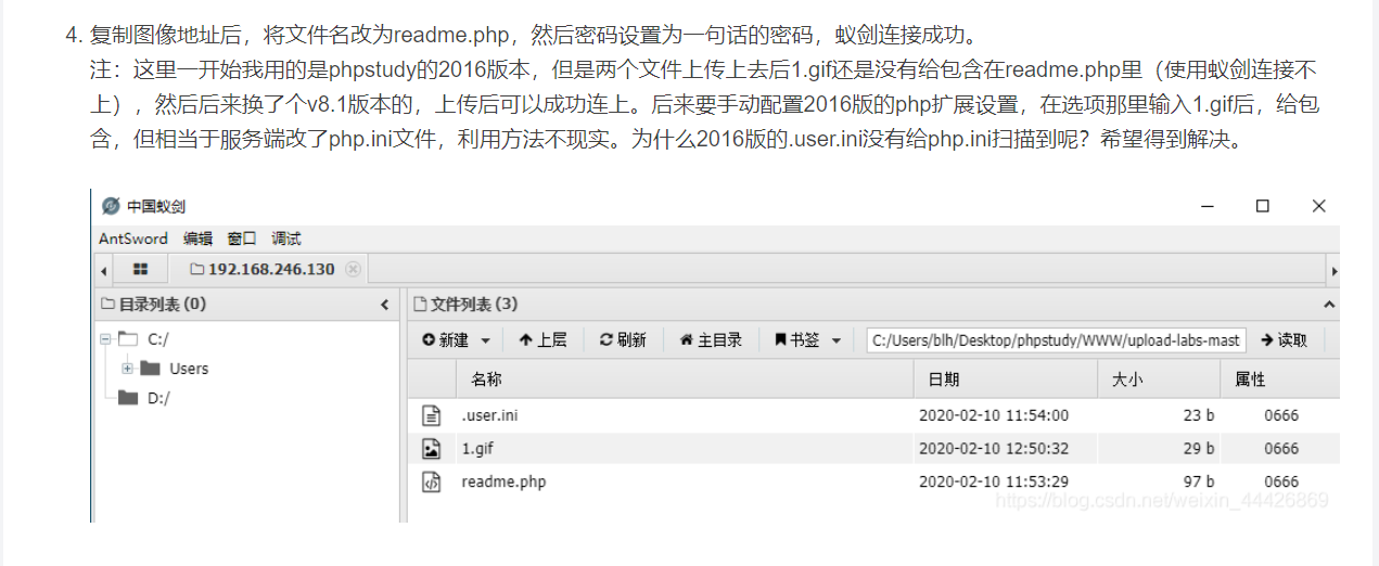应该是要,上传成功后,蚁剑连接,但是要注意,题目提示上传目录存在php文件(readme.php)所以蚁剑连接的时候要把文件名改成readme.php