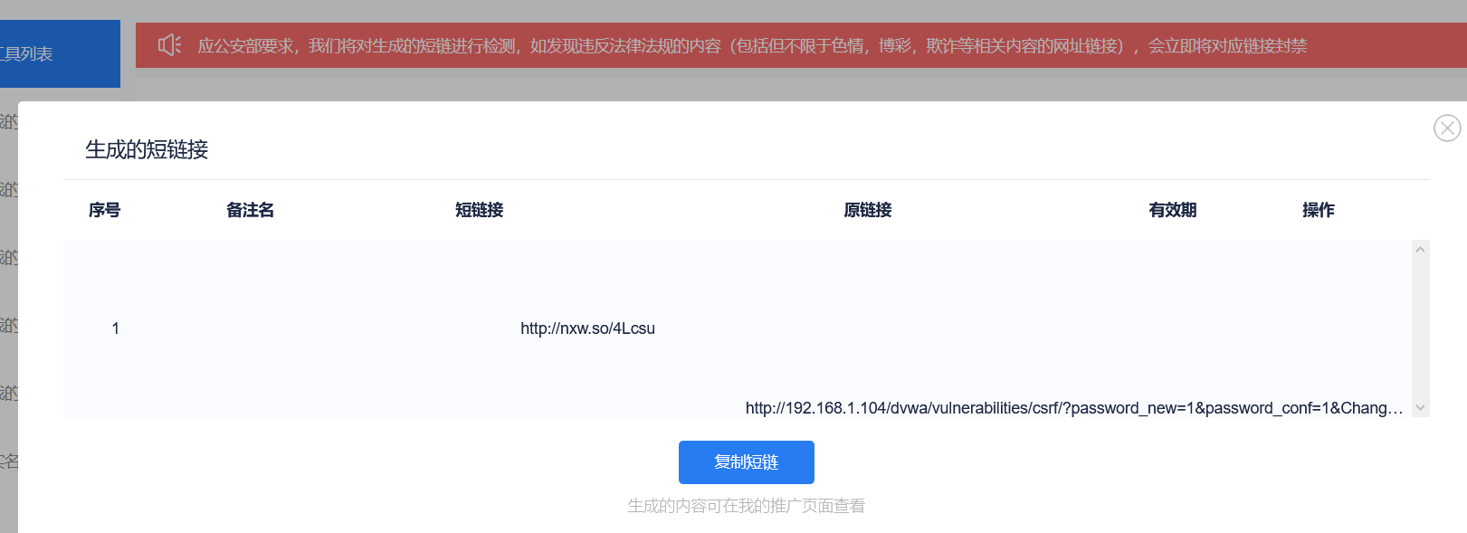 利用短链接注入在xss漏洞中,引诱受害者点击该链接,即可实现改密
