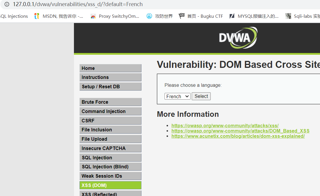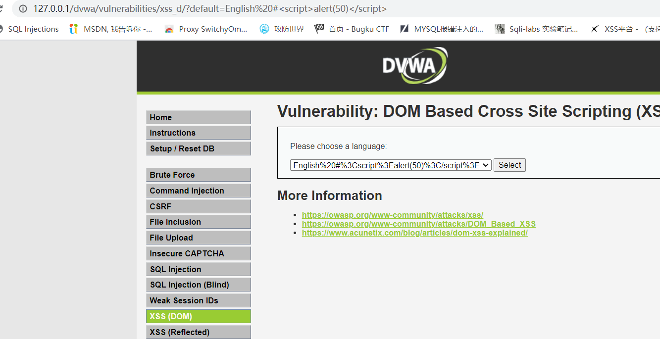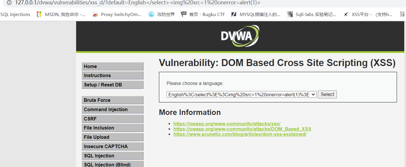 原理:在URL中#表示的是一个锚点。在浏览器识别url的时候,会把#后的字符当做页面的定位,然后加载页面的时候,直接定位到指定的标签。因此#后面的字符是不会被浏览器发送到服务器端的。这样就实现了绕过服务器端的防御机制。而依赖DOM修改html结构执行的是js代码,这个执行过程是在客户浏览器端的,因此实现了不经过服务器就可以实现xss注入。