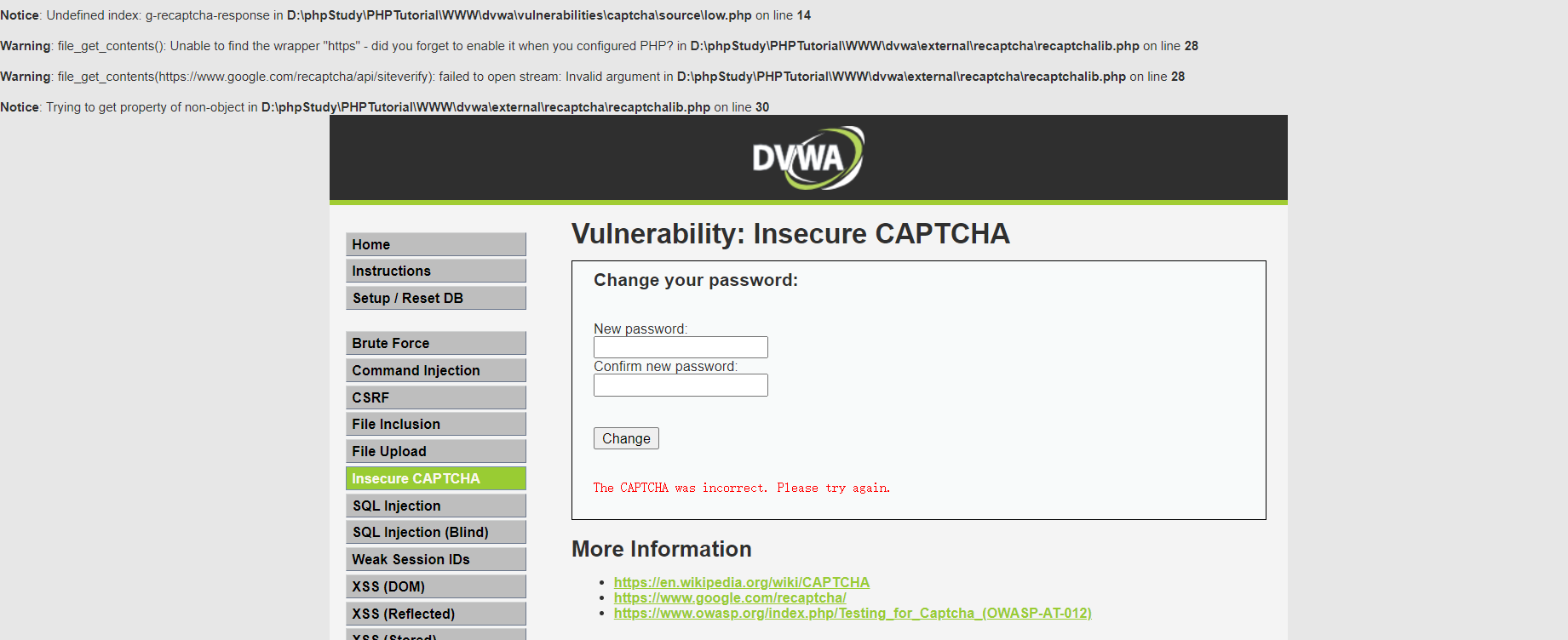 insecure CAPTCHA,翻译过来是不安全的验证码。CAPTCHA是Completely Automated Public Turing Test to Tell Computers and Humans Apart (全自动区分计算机和人类的图灵测试)的简称。