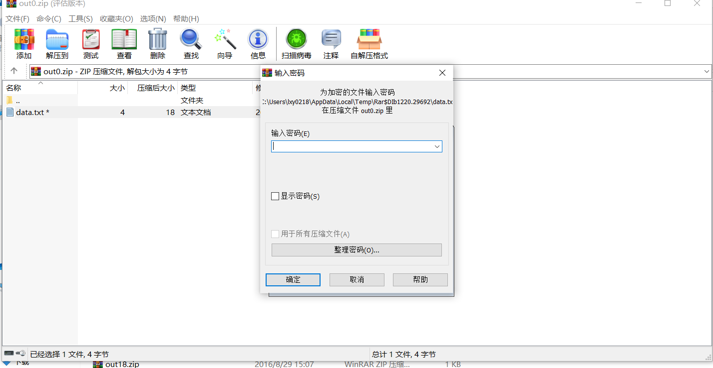在网上学习了一番后,知道了这是通过获取用户密码来解开压缩包