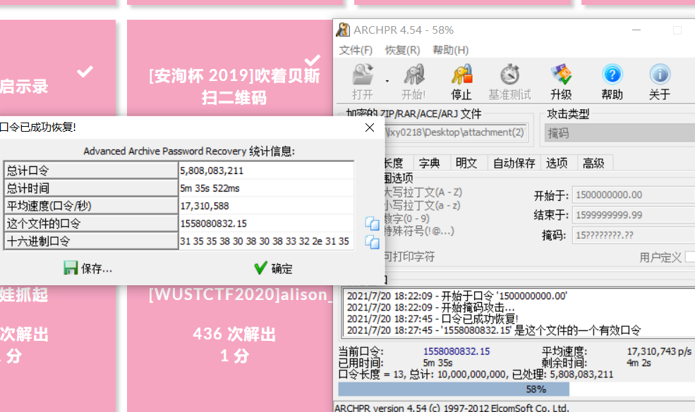 过了很久很久我才意识到,出题人用时间轴加密,这个也是个爆破,再根据比赛时间推算了一下时间戳大概开头,用掩码爆破