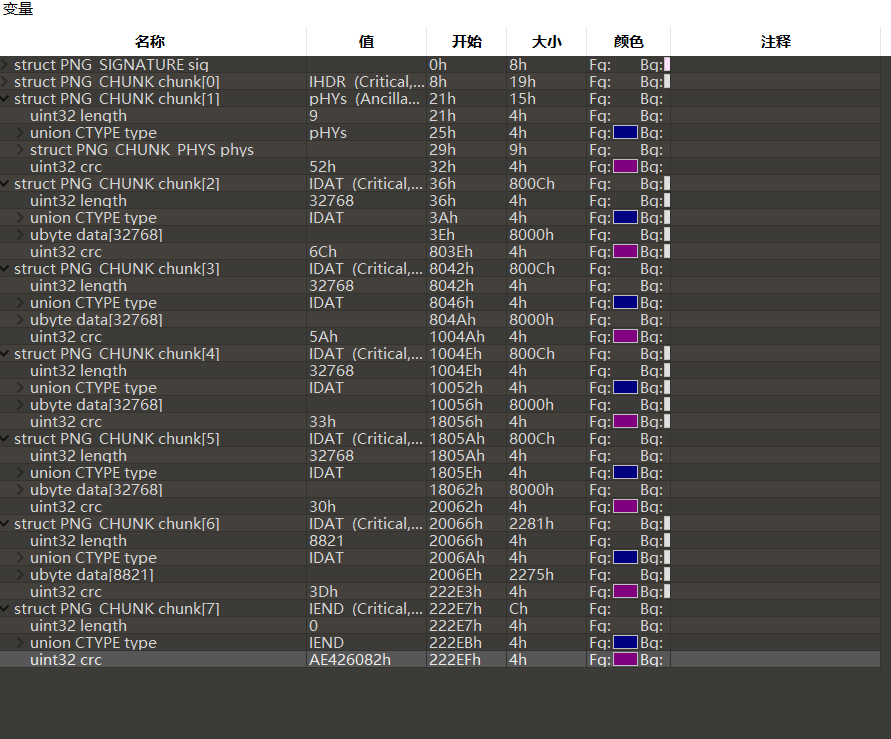 chunk[2]和[3]的uint32 type 令其十六进制数为49444154h