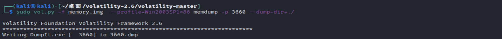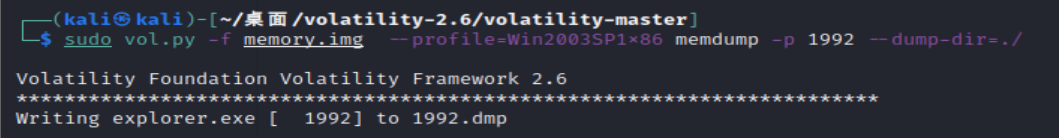 | sudo vol.py -f memory.img --profile=Win2003SP1x86 memdump -p 1992 --dump-dir=./