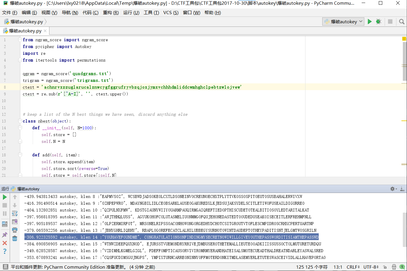 通过strings发现了明文,好家伙要把这句话删掉,再解一次