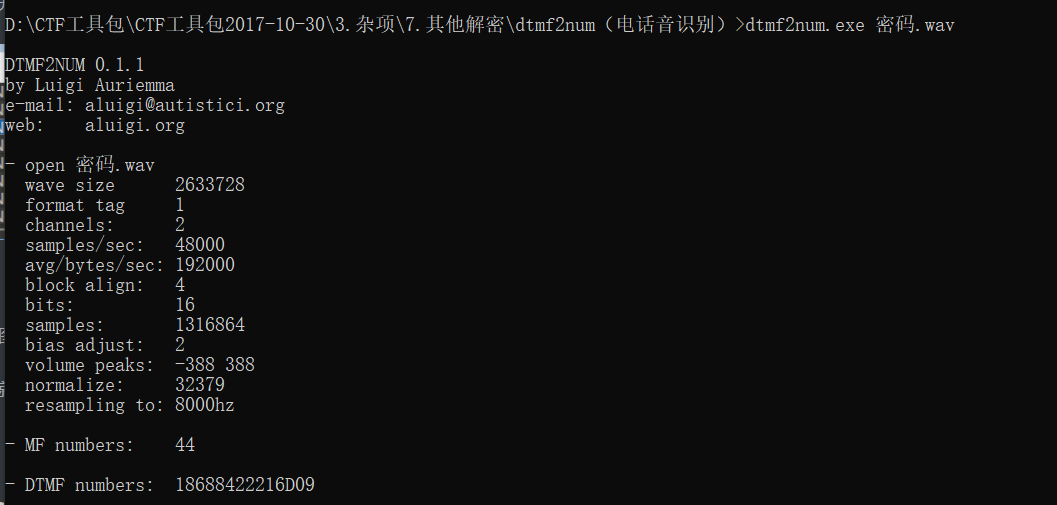有杂音识别出来不是特别准,通过频谱图对比得到:18684221609