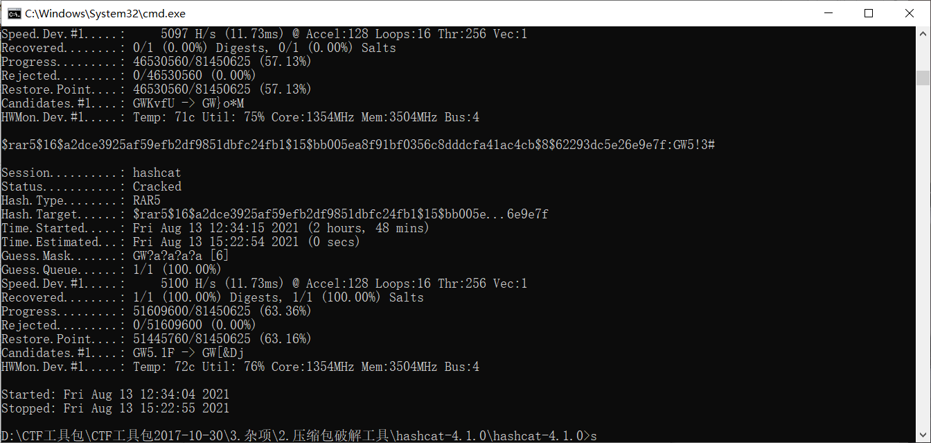 使用rar2hash获取hash值,然后用hashcat爆破(为什么用hashcat,因为ARCHPR无法对rar5的压缩包进行爆破