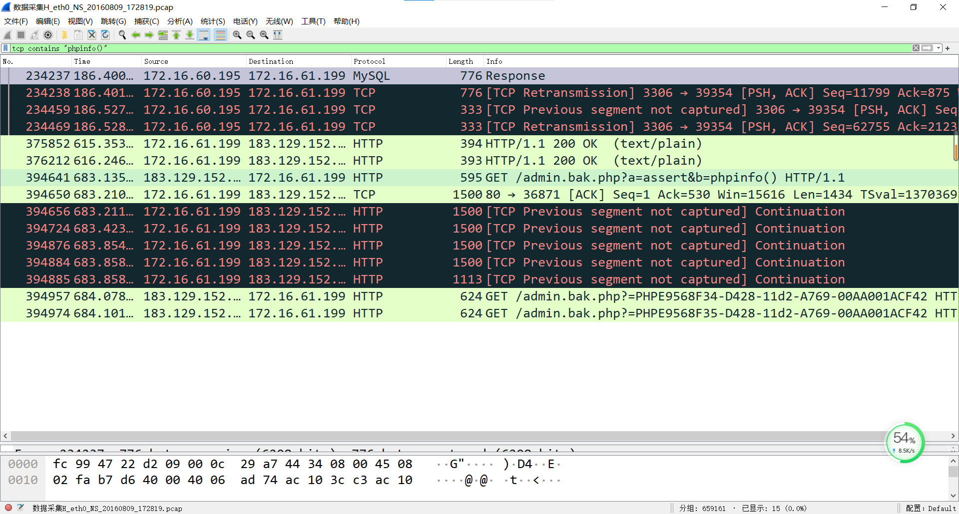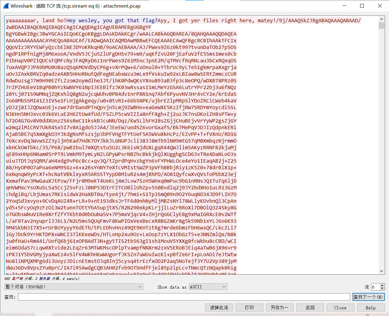 题目给了一个流量包,然后追踪tcp流